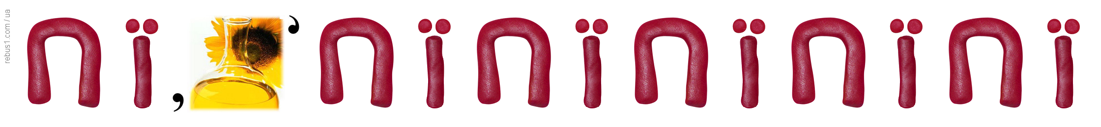 Якщо предмети, цифри або літери у ребусі зображені один в одному, то їх назви читаються із додаванням прийменника "у" або "в" (попереду назв або між ними). Дізнатися більше►